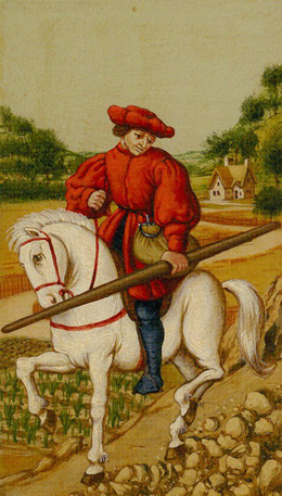 Он едет мимо поля покрытого зелеными всходами. Они говорят о его личностном росте, об опыте, который он приобретает и накапливает. Движется Рыцарь прочь от дома, он любит переезды и на одном месте долго не засиживается. Да он подвижен и быстро подстраивается под обстоятельства. Но, вместе с тем, почти не способен на настоящую сердечную привязанность, потому что обладает душой кочевника.