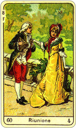 Изображение на карте представляет двух влюбленных, которые говорят о своем будущем, полном совместных проектов, наряду с бесконечной музыкой гармонии и мира. Карта указывает на людей с общими интересами, одинаковыми целями на один вид деятельности. Все это начало жизни, движение, которое характеризуется энтузиазмом и действием.