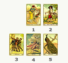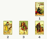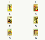 Выбирается всего три карты: первая показывает недавнее прошлое, влияющее на Ваш вопрос, вторая – настоящее и его влияние на Ваш вопрос, третья – конечный результат.