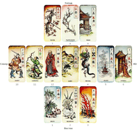 Все тот же классический расклад Маджонг, что и на костях, только вместо костей используются карты китайского символизма. Гадание предназначено для тех, кто предпочитает картинки слишком символичным и аскетичным костям Маджонг.