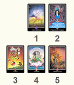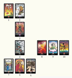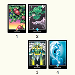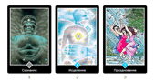 Выбирается всего три карты: первая определяет прошлое и его влияние на волнующий Вас вопрос, вторая – это влияние настоящего на этот вопрос, третья – конечный результат.