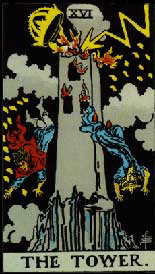Молния, этот перст Божий, символизирует некое внешнее событие, вызывающее слом или крушение прежнего порядка. Точно так же это может быть озарение, внезапно открывающее нам глаза на ошибочность наших прежних представлений и на неосуществимость планов. Однако нагляднее всего значение карты выявляется при сравнении ее с Четверкой Жезлов, представляющей собой как бы антипод Башни среди Младших Арканов.