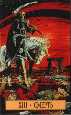 Если Дьявол представляет спуск, то неужели Смерть, представляет подъем? Но карта Смерть далеко не так проста, как кажется, и оказывается связана с физической смертью только в особых случаях. Скорей, это тяжелое освобождение от власти материи, когда старое эго буквально гниет и разлагается. Но это разложение и является единственным условием подъема, освобождения души, выхода на иной уровень бытия, тем более что центральная образность этого аркана – скорпион–змей–орел, как раз и говорит о преображении и подъеме на иной уровень – через алхимическое гниение дух становится орлом и возносится к Тифарет.