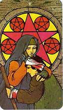 Комментарии. Сбивавшие всех с толку символ и картинку на карте Таро нам удалось объяснить правильно лишь только после длительного и внимательного изучения. Так почему же название Таро карты "Материальные затруднения" характеризует личность такой очевидной силы и мощи? Подробный анализ дал нам следующее объяснение: одна из сильнейших направляющих в природе Пятерки Тельца – стремление устранять человеческие страдания и бедность, чтобы "полностью изменить печальное положение вещей". На основании такой интерпретации на самом деле можно понять мнимые противоречия символа, применяя "интерпретацию" на личных примерах, мы внезапно получили логическое заключение.
