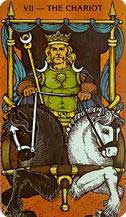 Торжественная фигура возницы триумфальной колесницы на карте Таро положительна и несет на себе печать доверия. Вознице не нужны вожжи, он и без них ведет своих сфинксов – белого и черного – доброго и злого. Голову возницы венчает корона победы, на его поясе и плаще символы магической власти, приобретенные длительным и терпеливым старанием.