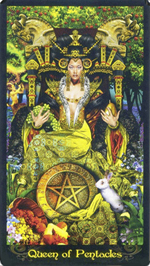 ![]() Королева Кубков Карта говорит о человеке с большими чувствами. В жизни она достаточно мягка, добра, но при этом все видит, от неё нельзя ничего скрыть. Этой даме требуется романтика в общении и в жизни. Нежная и преданная жена или мать, добрая, чистая, с чувством собственного достоинства, терпеливая, обожающая, сердечная. Дама приятная во всех отношениях, не склонная к агрессии и жестокости. | ![]() Королева Пентаклей Она человек достаточно осмотрительный и надежный в различных сферах деятельности, с ней можно иметь дело, она не подведет, при этом достаточно консервативна во взглядах на жизнь и коммерческую деятельность. Для нее важно быть самостоятельной в быту и в финансовых делах. Она устойчива и непоколебима в своих принципах. Такие люди добиваются прочного положения в самых различных видах деятельности "трудясь в поте лица". Нередко такой человек имеет хороший вкус и художественный талант. Она может прекрасно оформить свое жилище и рабочее место, роскошно одеваться, не затрачивая на это много средств. |