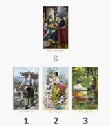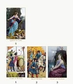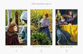 Три карты – выпадают всего три карты, обозначающие: первая – недавнее прошлое, вторая – настоящее, третья – конечный результат. Расклад характеризует общее положение дел в трактовках Романтического Викторианского таро.