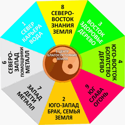 БА ГУА – восемь триграмм И-цзин, располагающиеся в виде восьмиугольной схемы. Каждой из триграмм приписываются характеристики, связанные с природными явлениями, свойствами человека, семейными отношениями и т.п., а также частями жилища.