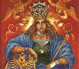 Французское название этой карты в средневековой колоде – 1, то есть Держатель Жезла. Меркурий – прежде всего держатель Жезла, Энергии, направляемой вовне. Итак, карта Маг изображает Мудрость, Волю, Слово, Логос, которым созданы миры. (См. Евангелие от Иоанна, гл. 1.) Она представляет принцип Воли.