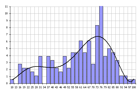- Вертикальные прямоугольники – Сколько процентов человек данного знака умерло в возрасте рассматриваемого трехлетнего периода.