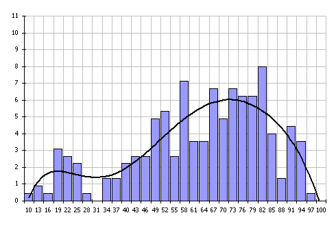 - Вертикальные прямоугольники – Сколько процентов человек данного знака умерло в возрасте рассматриваемого трехлетнего периода.